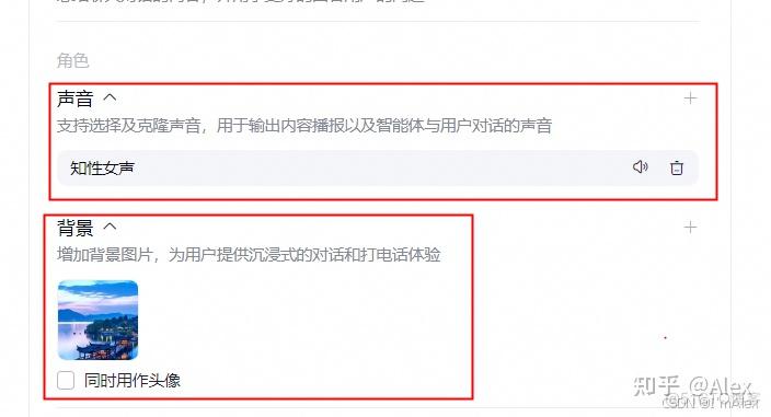 - 智能体配置声音,用于输出内容播报以及智能体与用户对话的声音。