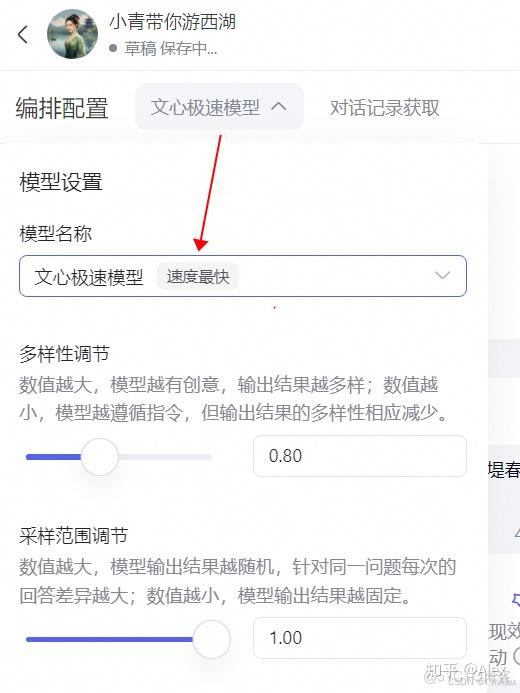 将文心大模型又默认的3.5切换到文心极速模型。